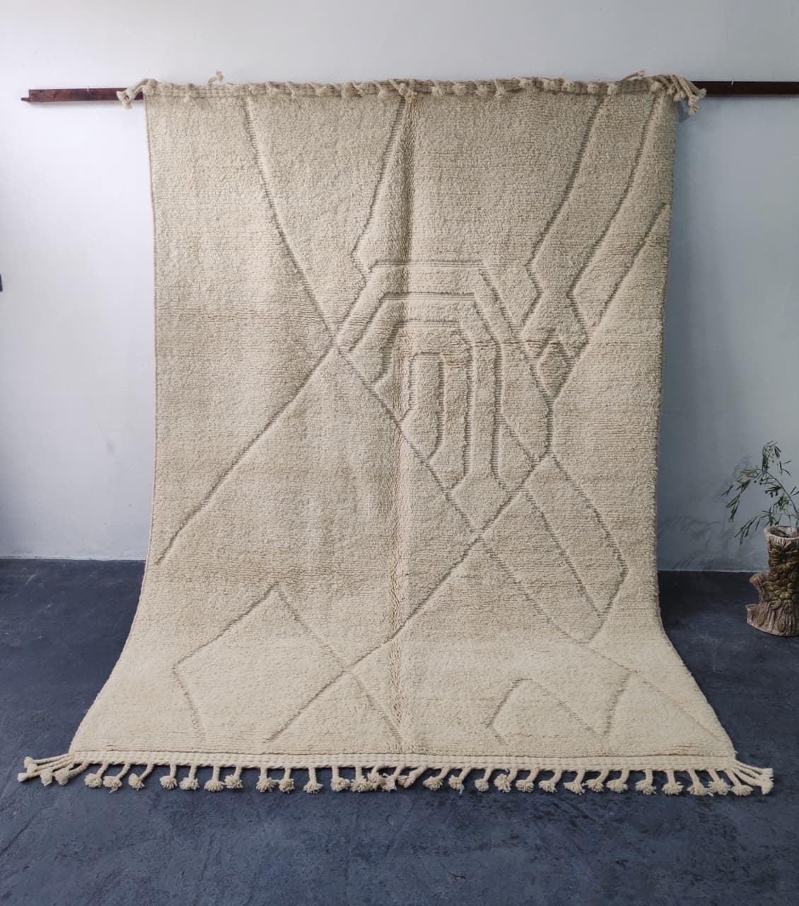 Our Beni Ouarain rugs, handwoven by women from the Atlas Mountains near Ouarzazate, embody elegance and tradition. Renowned for their exceptional wool, they offer unmatched softness and timeless style. Each piece, carefully selected, is a unique work of art that blends authenticity with modern design to enhance your interior.